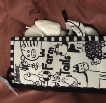 My daughter really likes her black and white books but this is by far her favourite. She is fascinated by the tails and is now really starting to grab hold of them as her coordination develops.