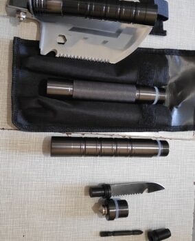Great camping/compact shovel. Very sturdy. The accessories are good and the shovel itself is great. I Would have given it 5 stars. I am impressed with the shovel, overly thrilled with the other accessories (knife, fire striker)