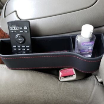 This is a great solution if you ever find yourself not having enough space to place items. However, make sure you look at your front seats and make sure your emergency brake isn’t on the side you would want the car gap to fit. If you have an emergency brake right next to your seat it won’t fit correctly. Overall, it’s a great product especially the bag hooks I use it to hang my umbrella and my purse.