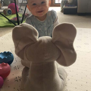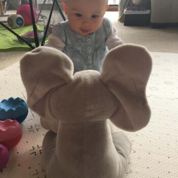 One of the largest, strongest animals in the animal kingdom sizes down to be a soft, cuddly friend to your little child. Our Peek-A-Boo Elephant Toy sings and interacts with your loved one for comfy, safe companionship while you’re busy doing housework or working.