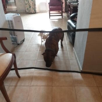 Super lightweight and easy to set up! We wanted to get away from the bulky dog gates and tried this magic gate out in hopes that it would be more aesthetically pleasing, and it did its job!