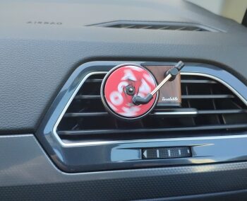 Bought this for the boyfriend but loved it so much that I got one myself! Comes with multiple discs or fresheners that make it feel like an actual record player. It makes the car look so much cuter and they all smell so good! Also! it the disc spins when the air is on which makes it soooo cool! Totally in love with this and would recommend it!