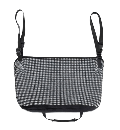 I love this for my purse! I thought it would be a little bigger but my purse fits fine. I wish it fit two for my passengers but the rhinestones are really cute and it gets my purse out of the way! :)