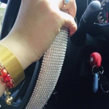 I love all that sparkles. Apart of me wishes that it was sparkly all the way around. But it’s pretty. I’ve had this steering wheel cover for about two weeks. It looks great, and it fits my Ford Escape perfectly. It was difficult to get it on, but I would except it to be. I’d definitely recommend it.