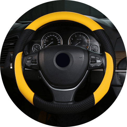 Bright yellow polyurethane leather and black nylon merge for a striking pop of color that’ll brighten up your driving space.